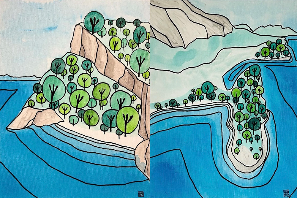 Svoje motive gledam iz ptičje perspektive, pronalazeći u poznatim pejzažima nove priče. Boje mora, obale i šuma pretačem u jednostavne, iskrene prikaze prostora koji nosi tragove djetinjstva, slobode i povezanosti s prirodom.