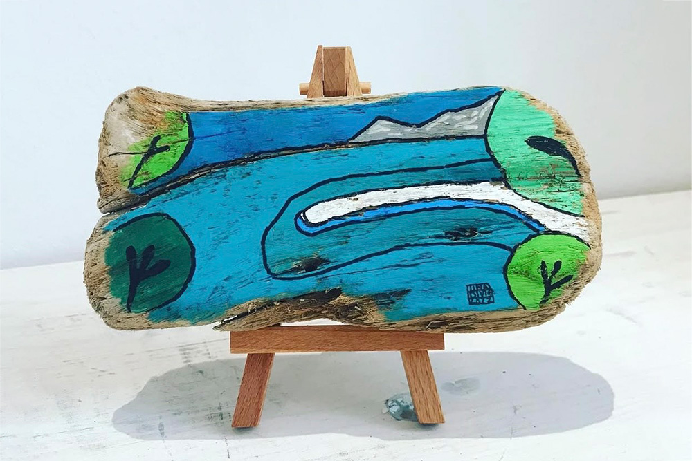 Iza imena RINTINTINA ART stoji vizualna umjetnica i dizajnerica nakita Tina Divić, čiji se radovi prepoznaju po profinjenom osjećaju za boju, jednostavnosti linija i dubokoj povezanosti s prirodom. Tinin slikarski izraz uronjen je u pejzaže mora i planine, koji u njezinim slikama i ilustracijama dobivaju karakterističan kolorit u nijansama plave, zelene, žute, tirkizne i bijele. Ove boje ne prikazuju samo krajolik, već prenose mir, svjetlost i fluidnost prirode. More i nebo u njezinim radovima postaju nježna kulisa života na Jadranu, dok planina Biokovo donosi osjećaj stabilnosti i snage.